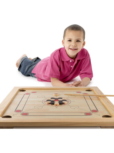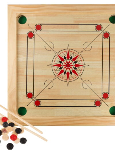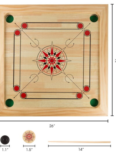 Rockin’ Rollers Carrom Board Game with Coins and Strikers, Wooden Board Game Set for Adults and Kids – 26″ Square