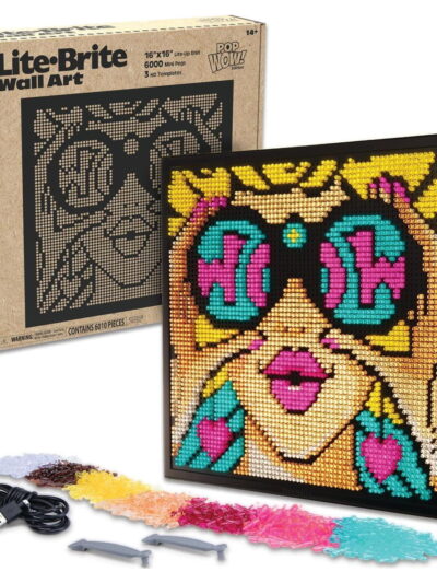 Lite-Brite Wall Art POP WOW- 16″ x 16″, 6,000 Mini Pegs, 3 HD Designs, Great Gift for Ages 14+, Create & Display