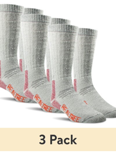 (3 pack) Realtree® Men’s Merino Wool Heavy Weight Crew Sock (Granite, Size L)