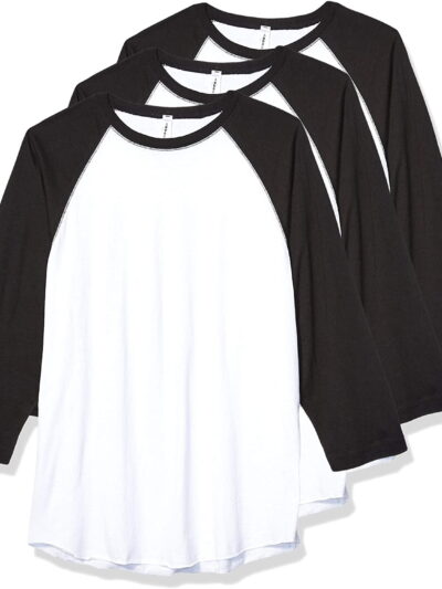 Aquaguard 100% Cotton Men’s Vintage Baseball T-Shirt crew neck tee (3 Pack) – 3XL – White/ black