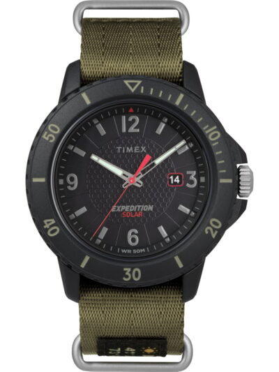 Timex Men’s Expedition Gallatin Solar Green/Black 45mm Outdoor Watch, Fabric Slip-Thru Strap