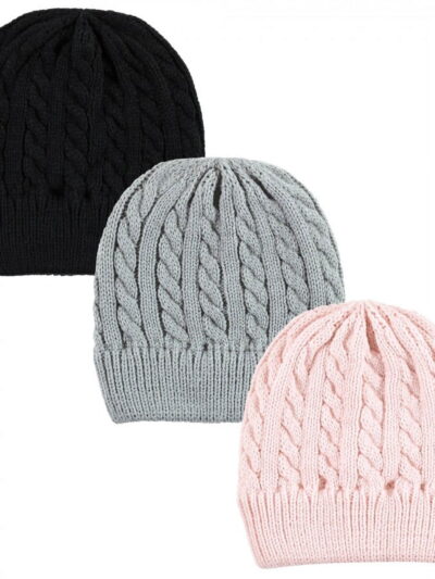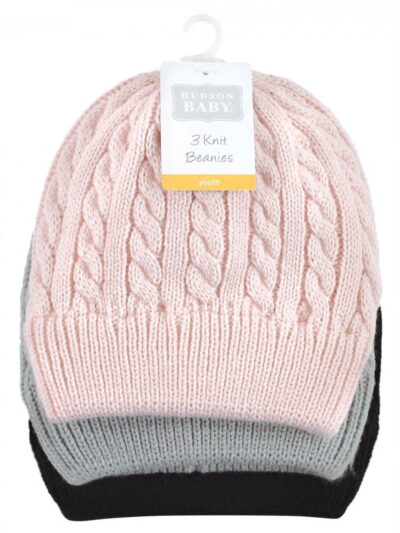 Hudson Baby Family Knitted Caps 3pk, Pink Black, Youth