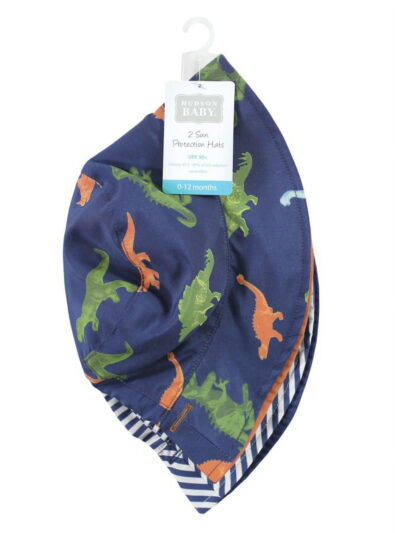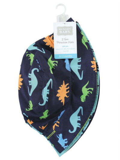 Hudson Baby Infant Boy Sun Protection Hat, Dino Stripe, 12-24 Months