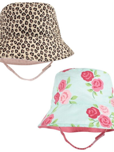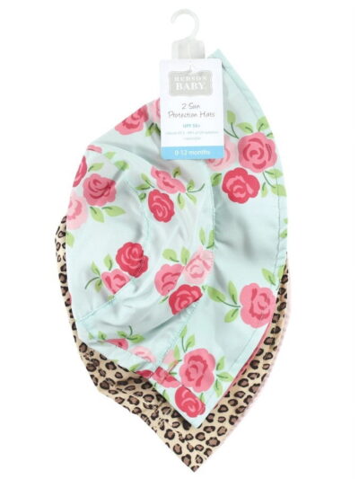 Hudson Baby Infant Girl Sun Protection Hat, Mint Floral Leopard, 0-12 Months
