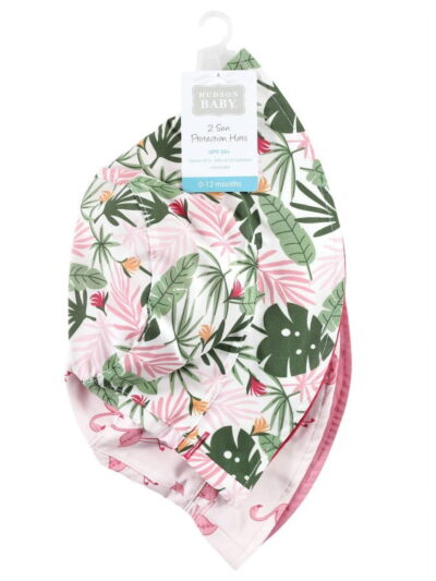 Hudson Baby Infant Girl Sun Protection Hat, Flamingo Tropical, 12-24 Months