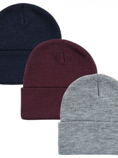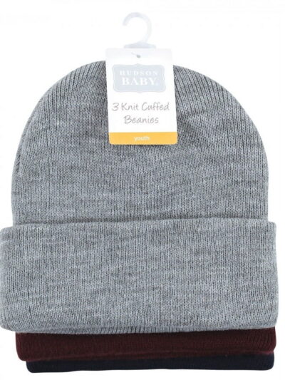 Hudson Baby Family Knit Cuffed Beanie 3pk, Navy Burgundy, Adult