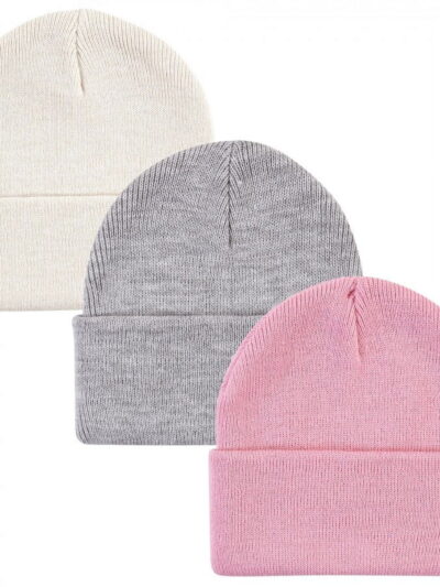 Hudson Baby Infant Girl Knit Cuffed Beanie 3pk, Orchid Pink, Infant Toddler