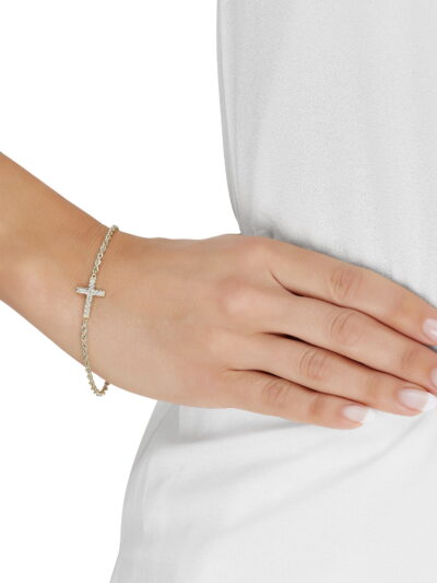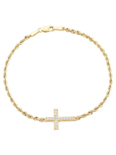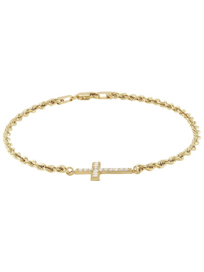 Brilliance Fine Jewelry Cubic Zirconia Cross Rope Bracelet in 10K Yellow Gold, 7.5″