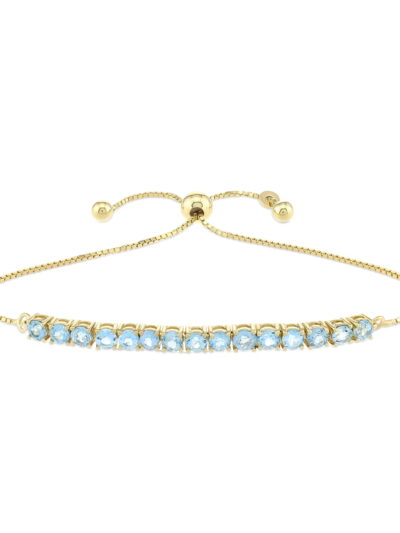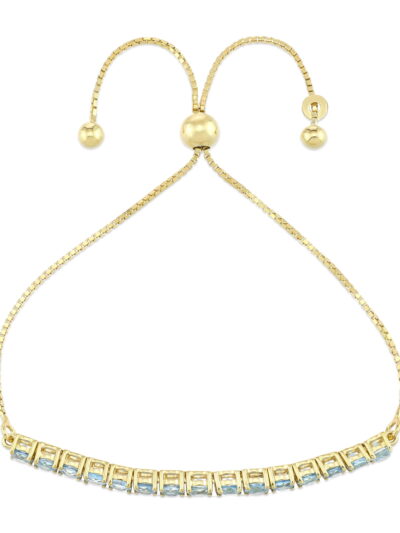 Brilliance Fine Jewelry Women’s 14K Gold Plated .925 Sterling Silver Swiss Blue Topaz Tennis Bolo Bracelet