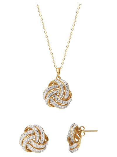 Brilliance Fine Women’s Love Knot 18K Gold Crystal Pendant and Earring Set