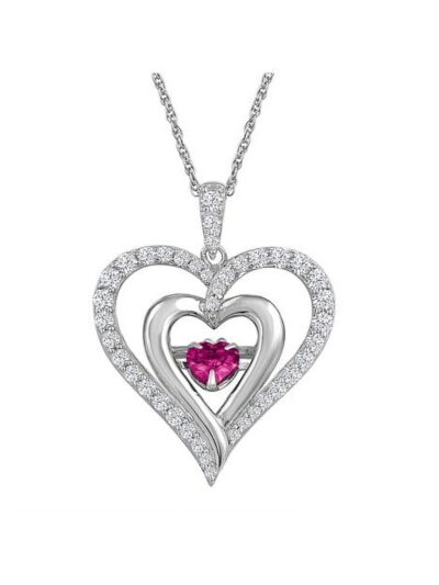 Ladies Brilliance Fine Jewelry Sterling Silver Ruby Dancing Heart Pendant, 18″
