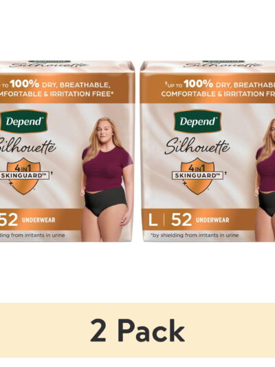 (2 pack) Depend Silhouette Women’s Incontinence & Postpartum Bladder Leak Underwear, L, 52 Count
