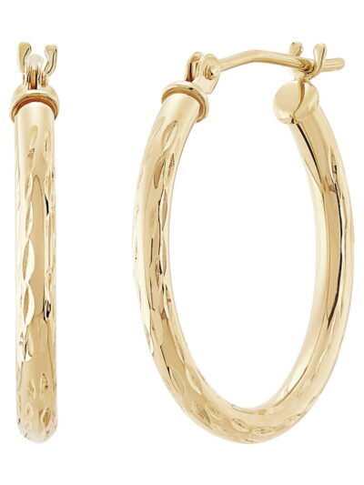 Brilliance Fine Jewelry 10K Yellow Gold Polished and Diamond-Cut Round Tube Hoop Earrings