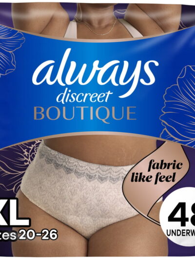 Always Discreet Boutique Incontinence and Postpartum Underwear for Women, Maximum Protection, XL, Rosy, 48 Count
