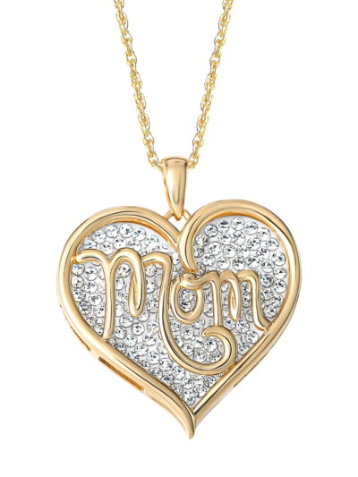 Brilliance Women’s Sterling Silver Gold-Plated Crystal “Mom” Pendant with 18″ Chain