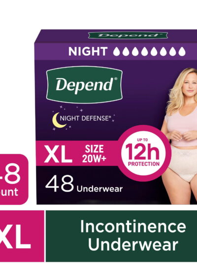 Depend Night Defense Incontinence Underwear for Women, Adult Diapers, XL, 48 Count HSA/FSA Eligible