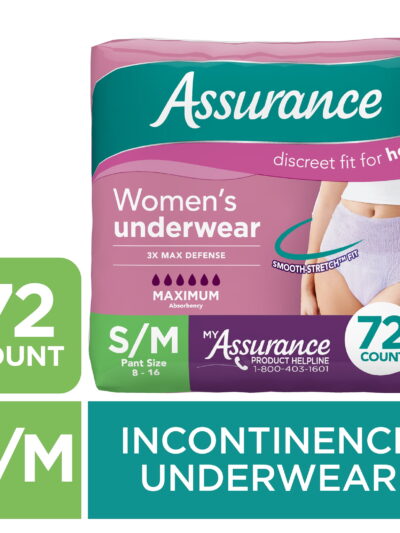 (2 pack) Assurance Women’s Incontinence & Postpartum Underwear, Small / Medium, Maximum Absorbency (72 Count)