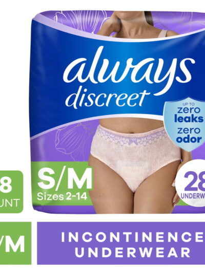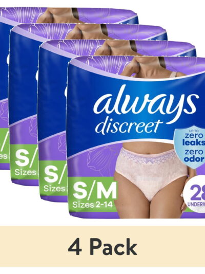 (4 pack) Always Discreet Adult Incontinence Underwear for Women and Postpartum Underwear, S/M, Up to 100% Bladder Leak Protection, 28 CT