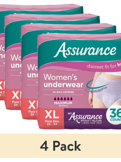(4 pack) Assurance Women’s Incontinence & Postpartum Underwear, XL , Maximum Absorbency (36 Count)
