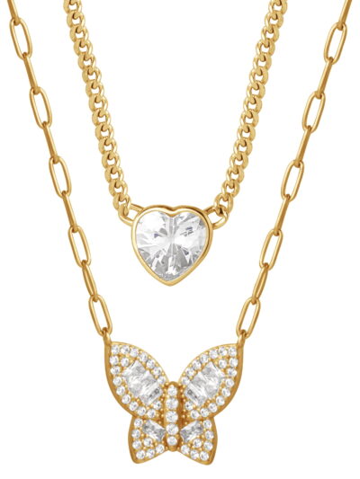 Brilliance Fine Women’s Cubic Zirconia Yellow Gold Plated Sterling Silver Heart and Butterfly Necklace Set, 18″