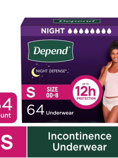 Depend Night Defense Incontinence Underwear for Women, Adult Diapers, S, 64 Count HSA/FSA Eligible