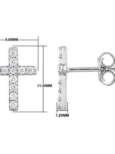 Unique Moments 1/4 Ct Round Lab Grown Diamond Cross Stud Earring in Silver for Women (H-I, SI-I1)