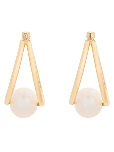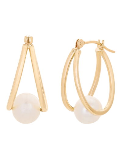 Brilliance Fine Jewelry Women’s 14K Yellow Gold White Pearl Captured Hoop Earrings
