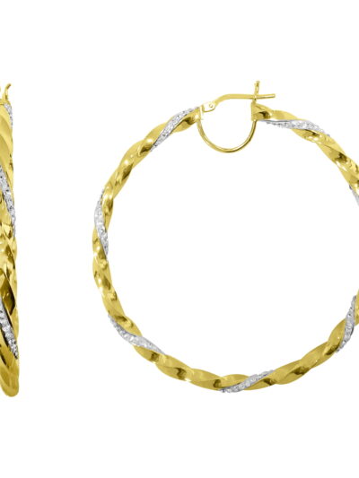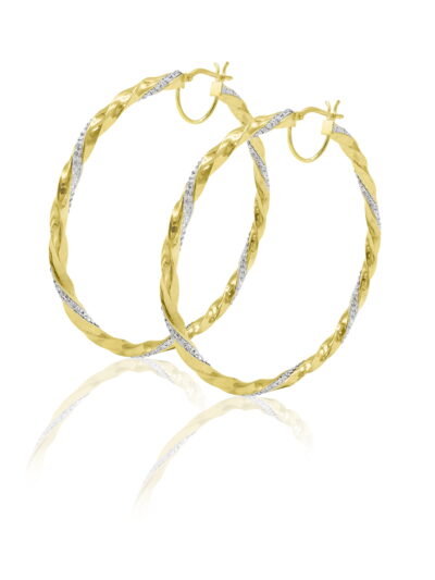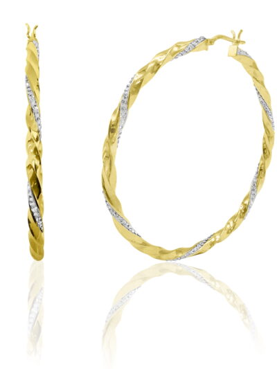 Brilliance Fine Jewelry Women’s 14K Gold Plated Sterling Silver Twisted Crystal Round Big Hoop Adults Earring