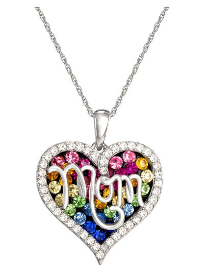 Brilliance Fine Women’s Sterling Silver Multi-Color Crystal Mom Heart Pendant Necklace, 18″ chain