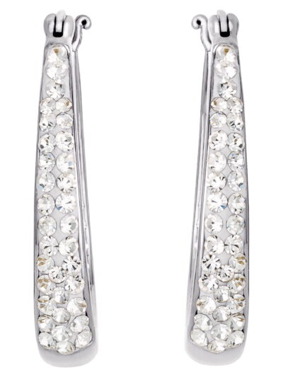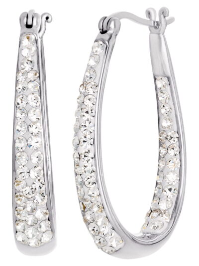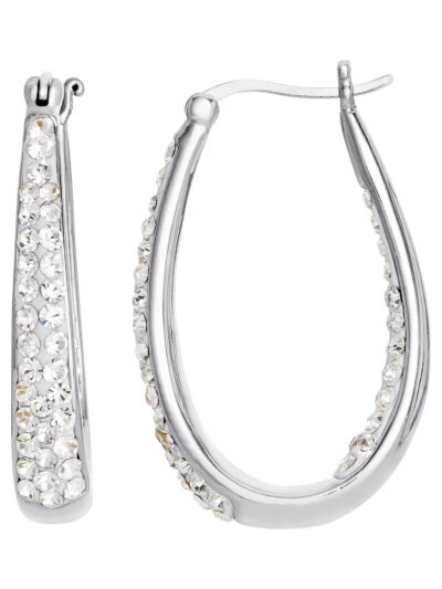 Brillinace Fine Women’s Sterling Silver Clear Crystal Hoop Earrings