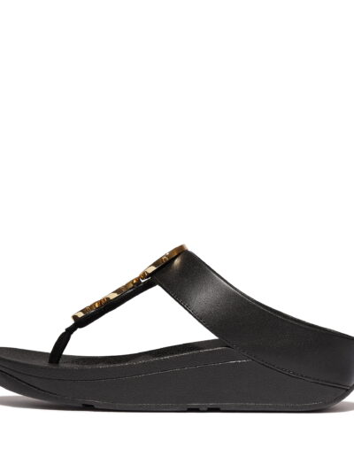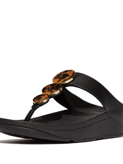 FitFlop Women’s Fino Resin Hoop Leather Toe Post Wedge Sole Thong Sandals