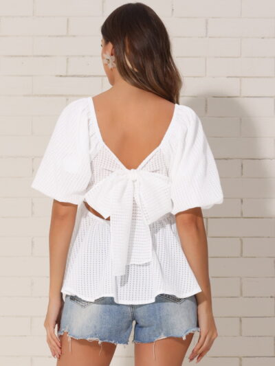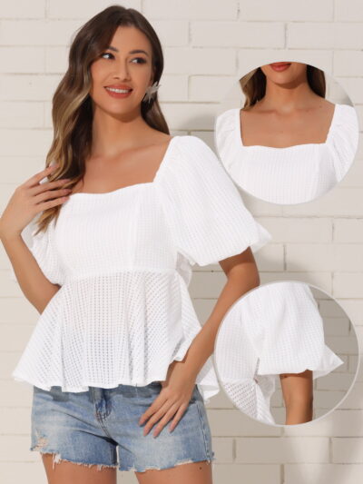Unique Bargains Summer Tops for Women’s Square Neck Short Sleeve Blouse XL White