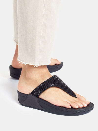 FitFlop Women’s Lulu Crystal Embellished Toe Post Wedge Sole Thong Sandal