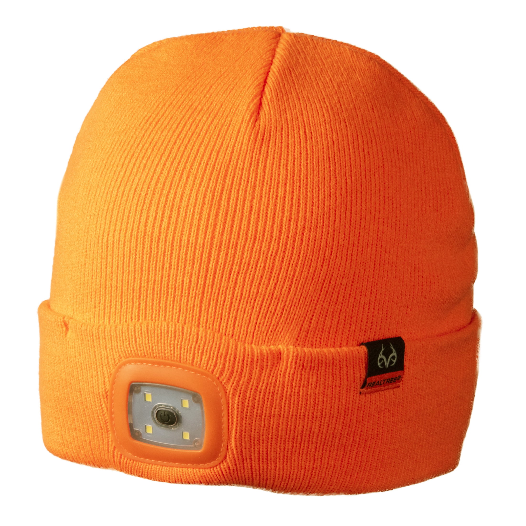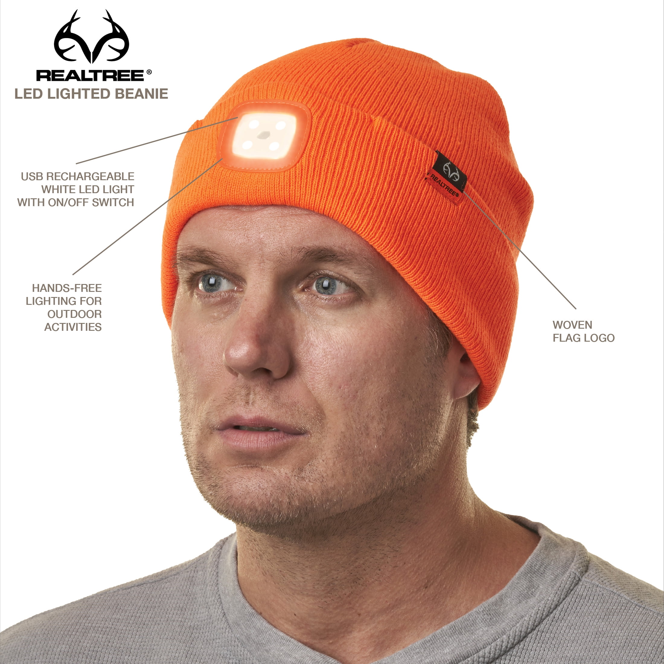 Safety is number one every time you head afield, and it is especially critical during firearms hunting seasons. The Realtree Blaze Orange LED Lighted Hunting Beanie adds another level of safety above its fluorescent coloring, which is an integrated white LED light with a convenient on/off switch. When approaching your favorite deer stand or blind in the pre-dawn darkness or right at dawn, light the way and make your human presence known to other hunters in the surrounding timber. The best part is that this hat/flashlight combo keeps your hands free so that you can carry your rifle, insulated bottle of hot coffee and other accessories without the needless headache of juggling a handheld flashlight. Ideal for meeting the blaze orange head-covering requirement that most midwestern and eastern states enforce, it also makes a great fit in western states that require only a blaze orange hat. It works well for virtually any outdoor activity where a hands-free flashlight comes in handy. Worry no more about dead batteries, as the LED recharges via USB — plug it in the night before your hunt and you’re ready to go!