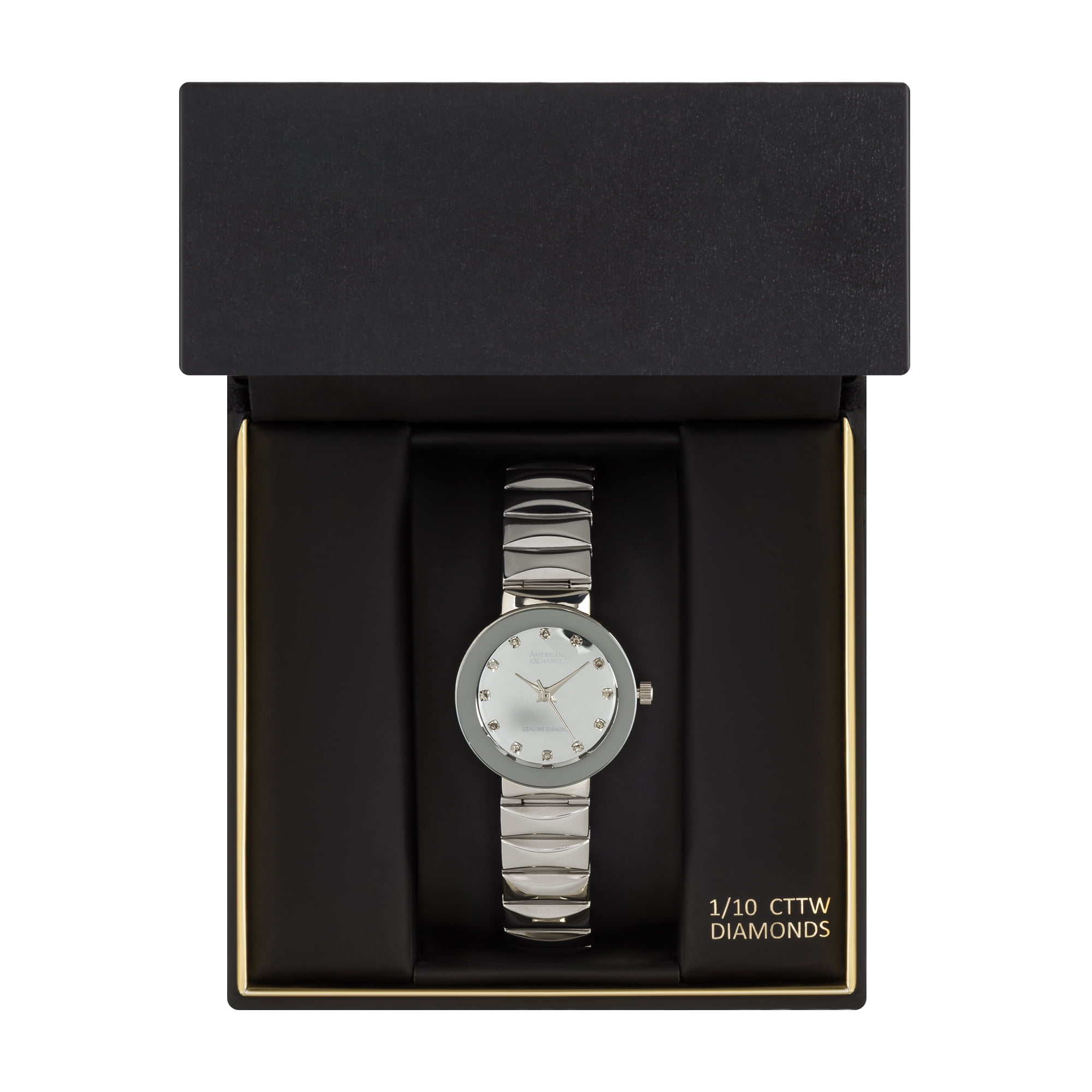 This women’s watch is a stunning and timeless piece, perfect for any occasion. It features a solid metal case and band, finely detailed with a unique diamond markers. Premium quartz movement ensures accurate timekeeping, while the distinct colour and attention to detail add a touch of grace and elegance. A must-have for your collection, this ladies Genuine Diamond collection watch is crafted with style.