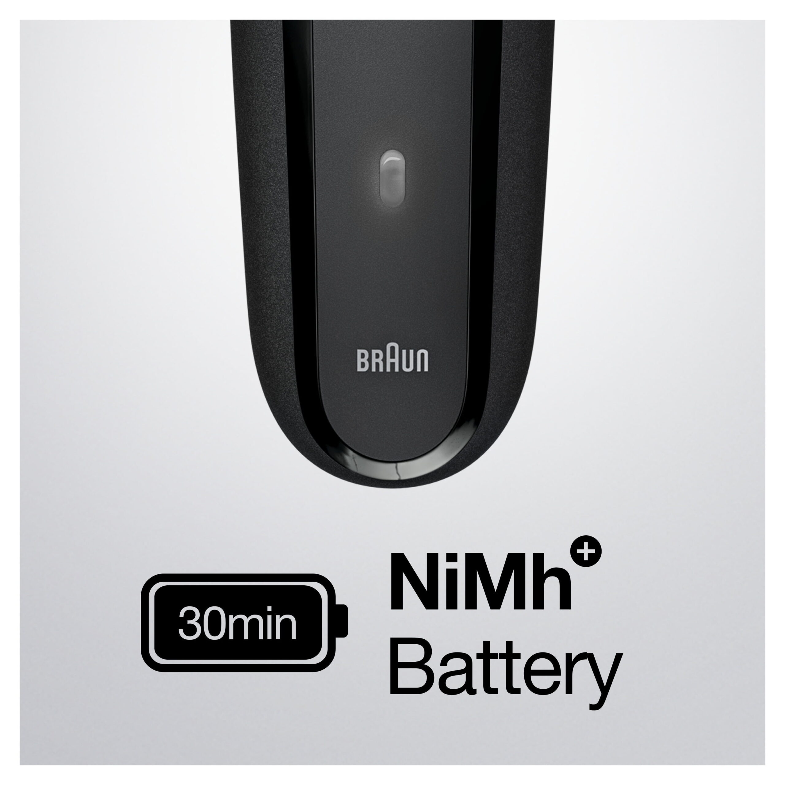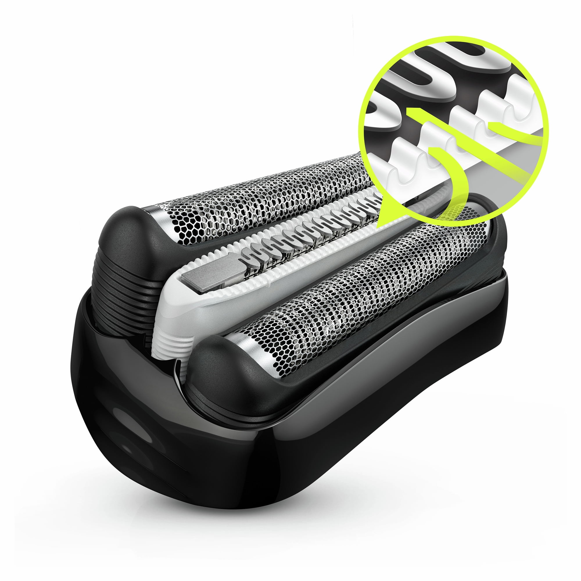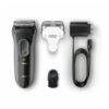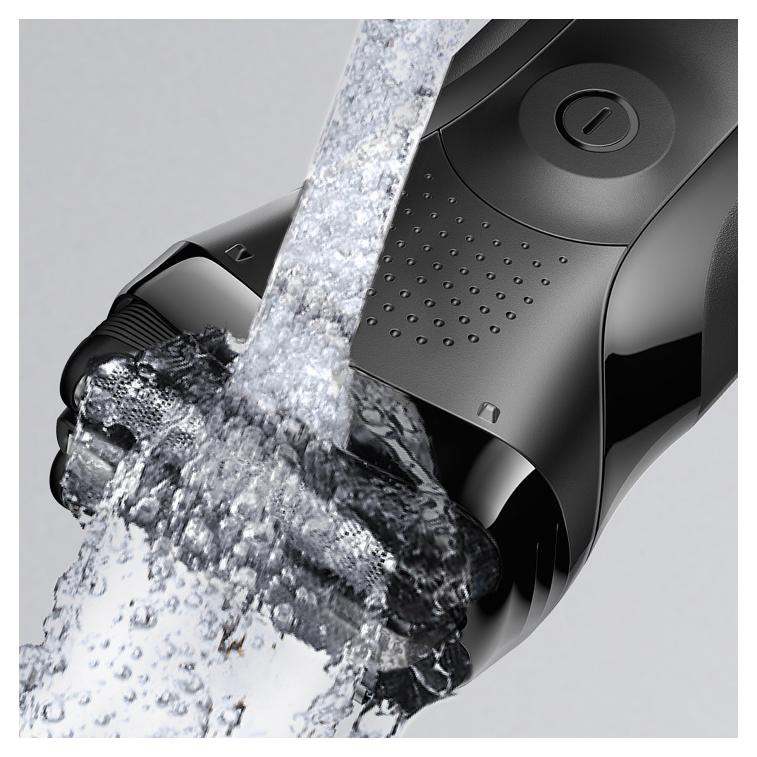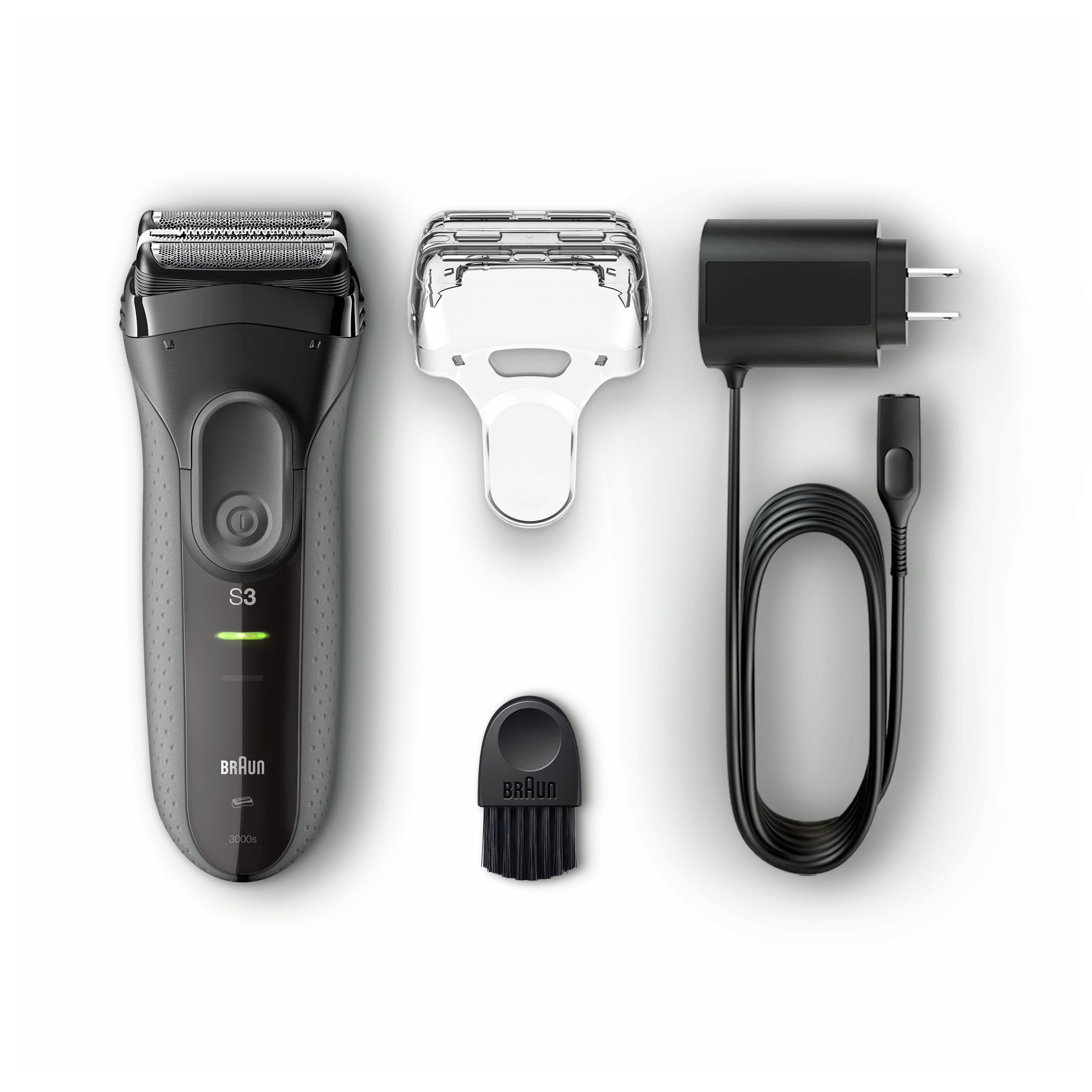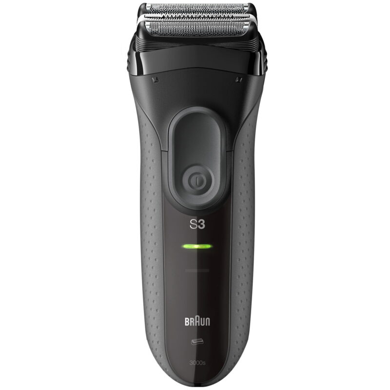 The Braun Series 3 ProSkin 3000s rechargeable electric foil shaver provides efficient shaving in one stroke. 3 independently floating shaving elements adapt to your contours for greater comfort and a specialized Micro Comb to capture more hairs in one stroke* for a faster and gentler shave. The unique design of the precision head tackles hard-to-reach areas, like under the nose and neck area, while its ergonomic grip and waterproof design promise secure handling even in wet bathroom conditions. *Versus Braun Series 3. Tested on 3 day beard.