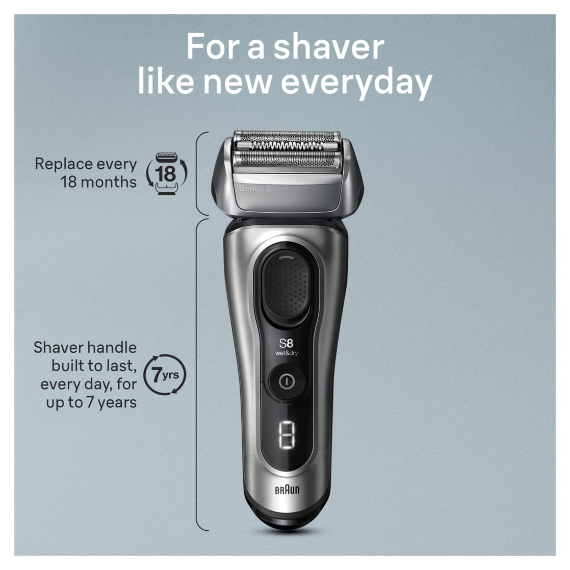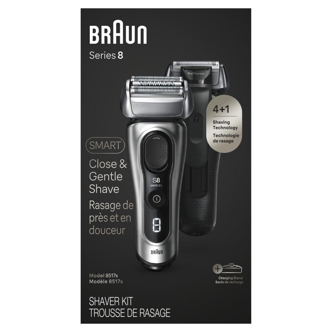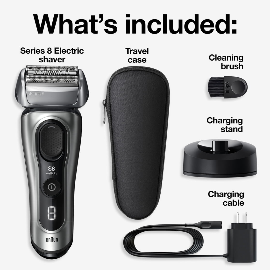 Braun Series 8 Wet & Dry Electric Shaver, Charging Stand, 8517s Galvano Silver