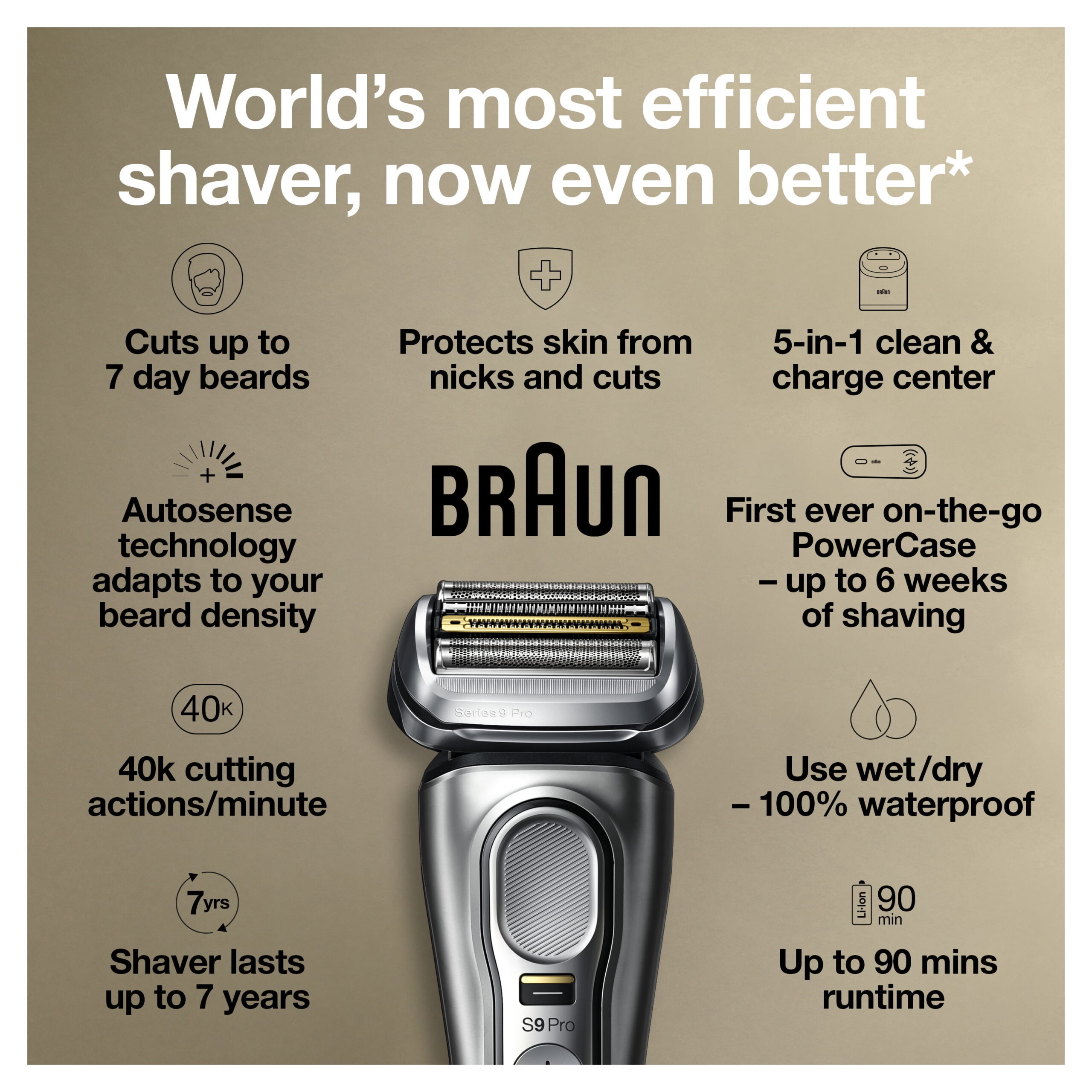 Braun Series 9 Pro Electric Razor for Men with PowerCase, Clean Station, Rechargeable Wet Dry Shaver, 9477cc