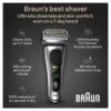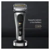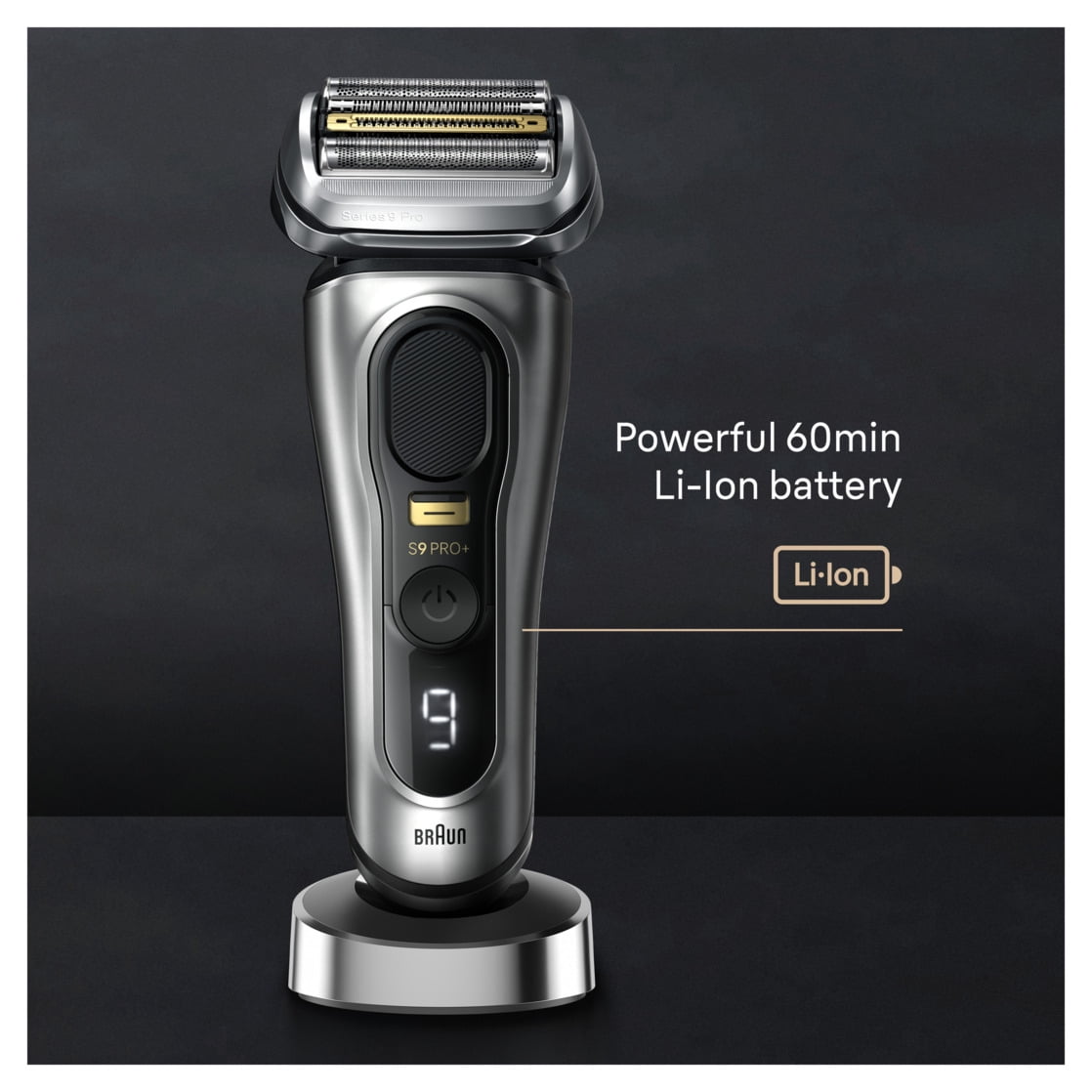 Redefine your beard care routine and experience ultimate closeness and skin comfort with Braun’s upgraded Series 9 Electric Shaver for men. With 5 specialized Pro Shave elements including the Pro Lift Blade, this Braun wet and dry shaver provides an efficient and gentle shave in every stroke, whether a 1, 3, or 7-day beard. Braun’s unique Sonic Technology uses 10,000 micro-vibrations to help capture more hair while gently gliding over the skin. In addition, Syncro Sonic Technology reads and adapts to your beard to provide extra power where you need it most, for a close shave even on dense beards. This electric razor includes a Precision Pro Trimmer, an integrated beard trimmer enhanced with surgical-grade stainless steel that slides out of the back of the Braun shaver to perfectly cut even the longest hairs, sideburns and mustache. Braun Series 9 9517s rechargeable shavers for men use a powerful Li-Ion battery that lasts for 60 minutes of use and includes a 5-minute quick charge option. These electric shavers for men are 100% waterproof and can be used with foam, gel or even under the shower. All Series 9 men’s electric shavers are made in Germany with premium craftsmanship.
