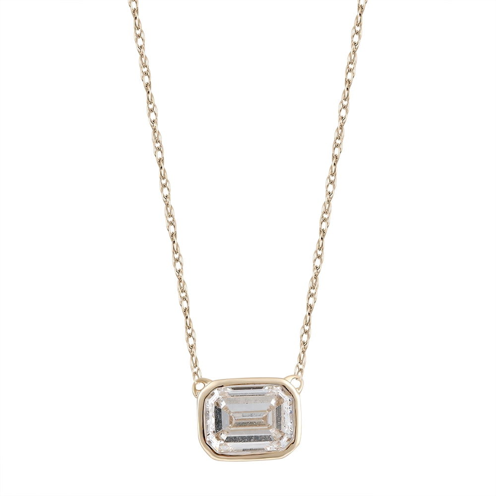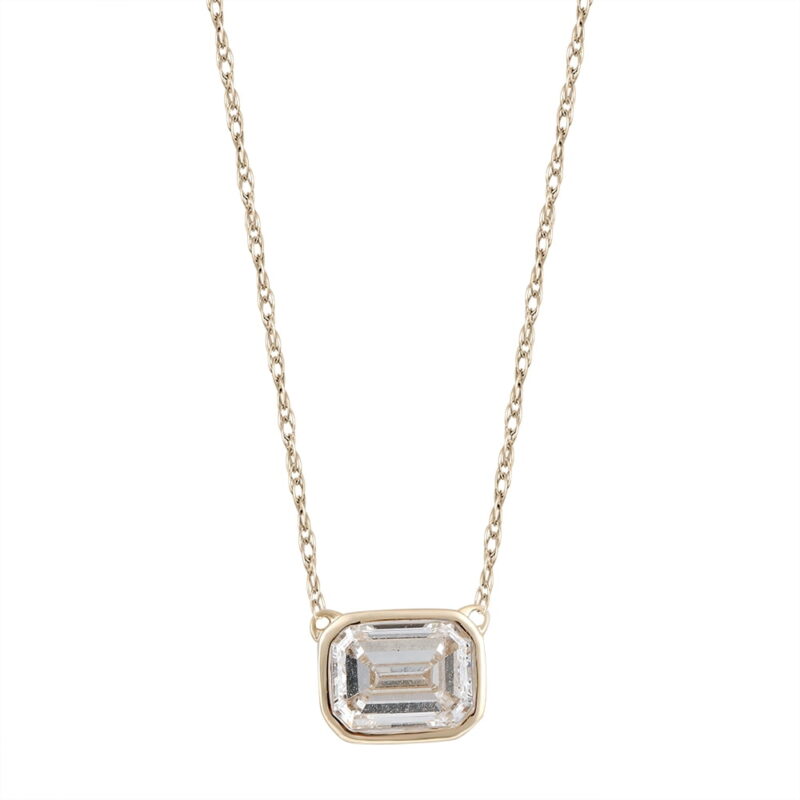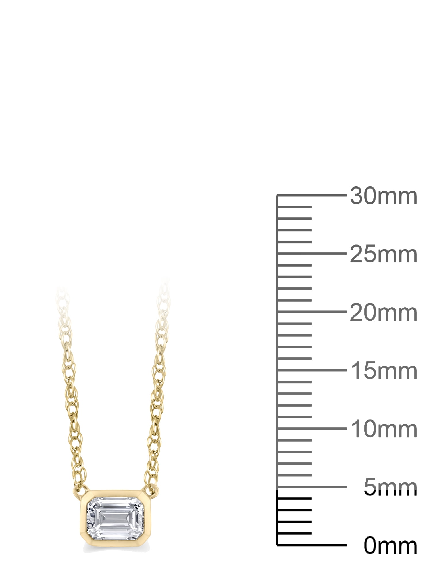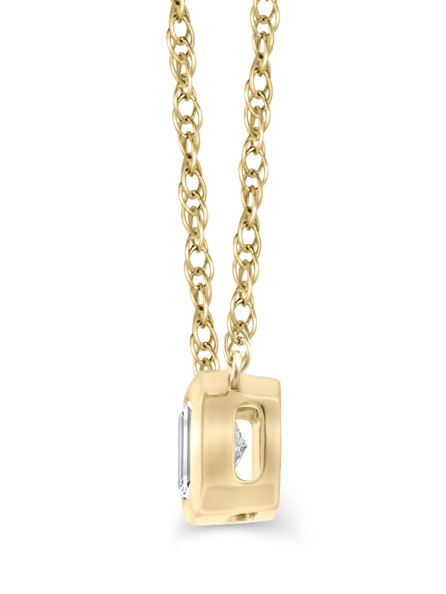 Emerald Shape Solitaire Pendant Necklace is the perfect addition to any jewelry collection. Crafted from 14KT Gold Plated Silver, this pendant features a emerald cut lab grown diamond set in a bezel style. The pendant comes with a rope chain that is 18 inches long and has a spring ring closure. The necklace is perfect for women, girls, and teens who love to show off their style. The pendant shape and diamond color make it a perfect gift for someone special. Add this necklace to your collection today and experience the beauty and elegance of fine jewelry. Women, teens age group makes a lovely gift for valentine’s, birthday or for any special occasion.