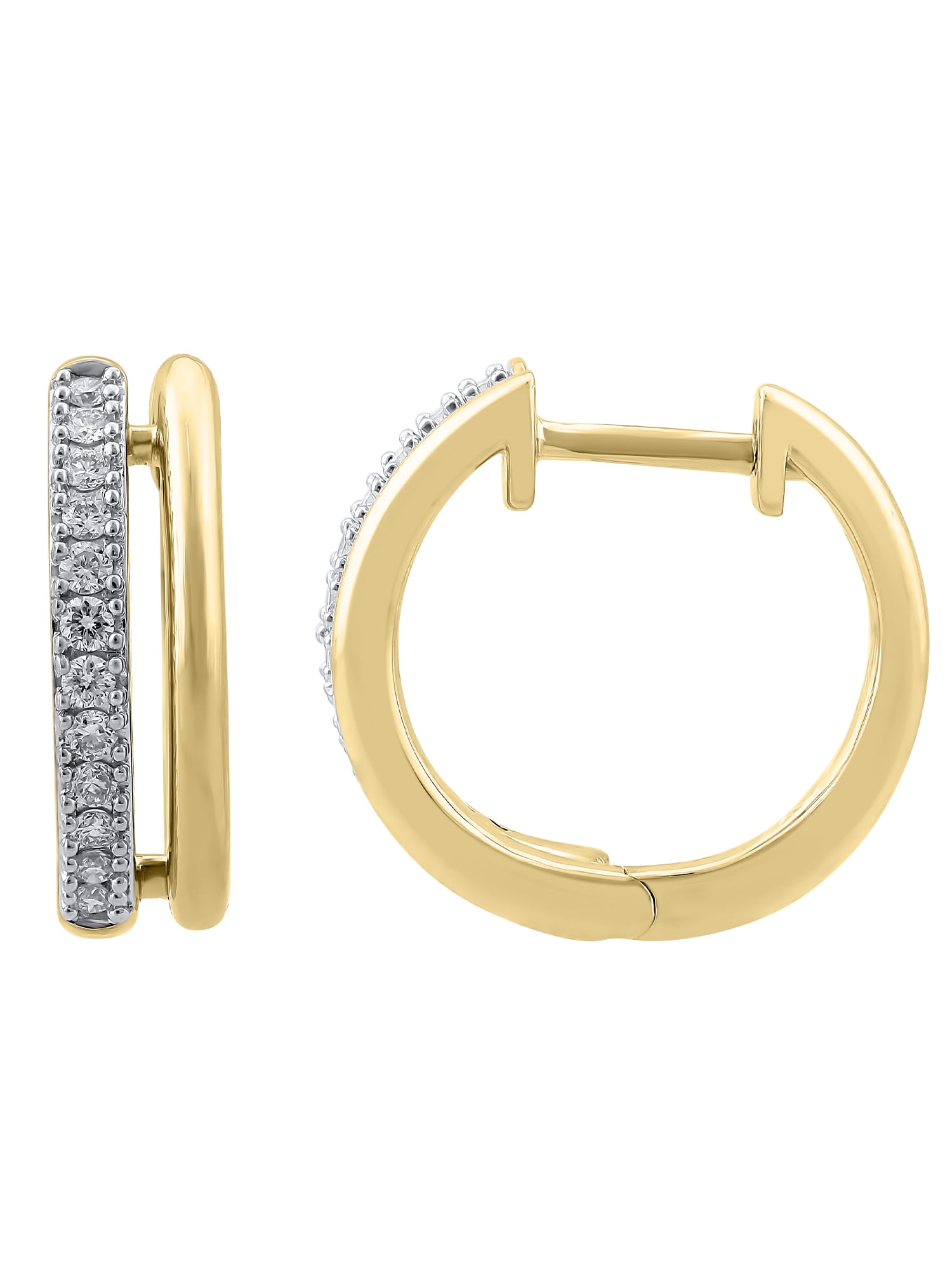 Elevate your jewelry collection with these stunning 1/4 Cttw Brilliance Fine Jewelry Lab Grown Diamond Hoop Earrings. Crafted in a 14KT Gold Plated Silver, these earrings boast a round diamond with a clarity of SI2 and a color of HI. The prong setting style further enhances the beauty of the diamond, making it a perfect addition to any outfit. These earrings are perfect for any occasion and are a must-have for any jeweler’s collection. These earrings are a true masterpiece and are sure to impress. New condition durable and timeless piece. Women, teens age group makes a lovely gift for valentine’s, birthday or for any special occasion.