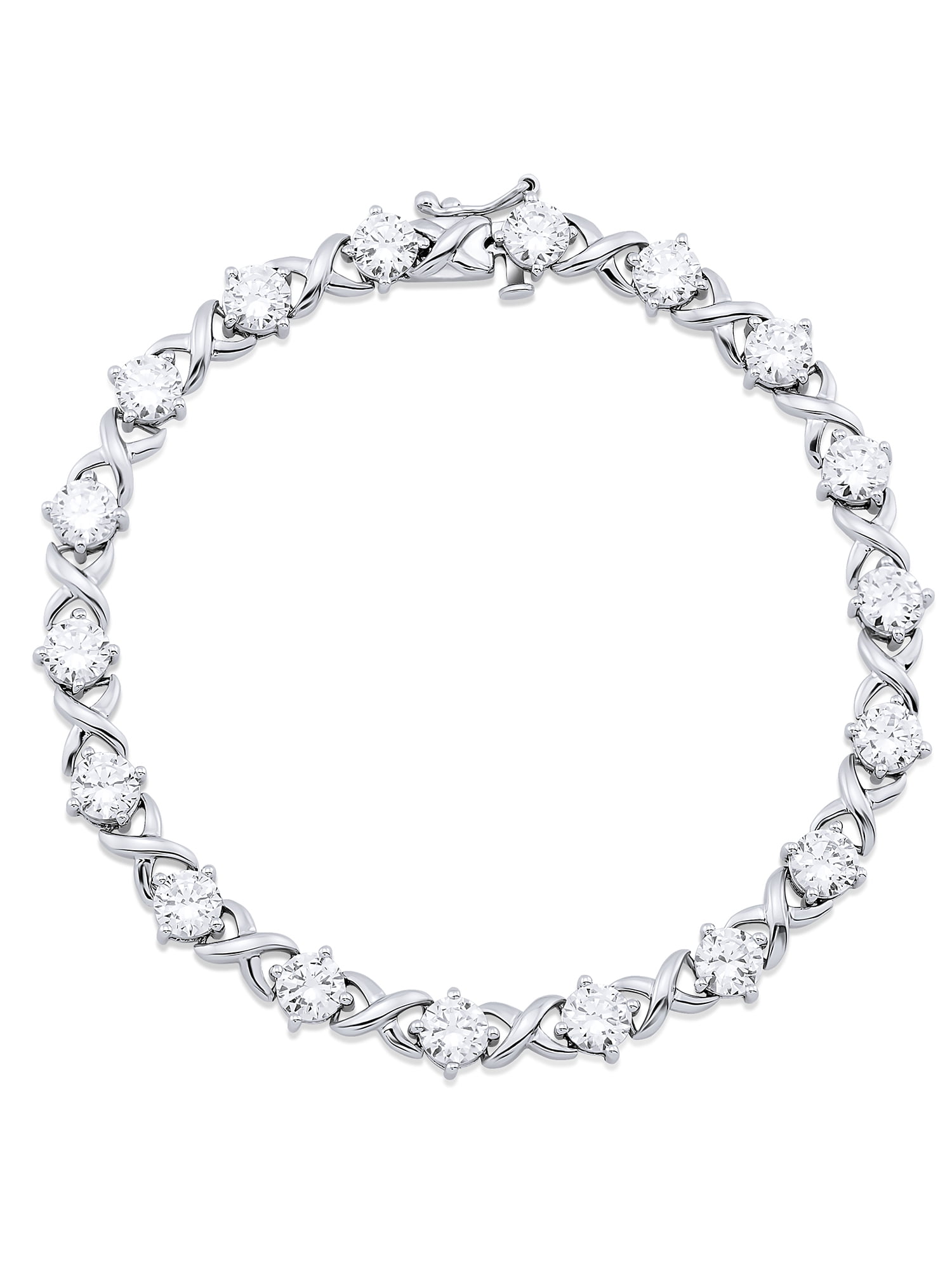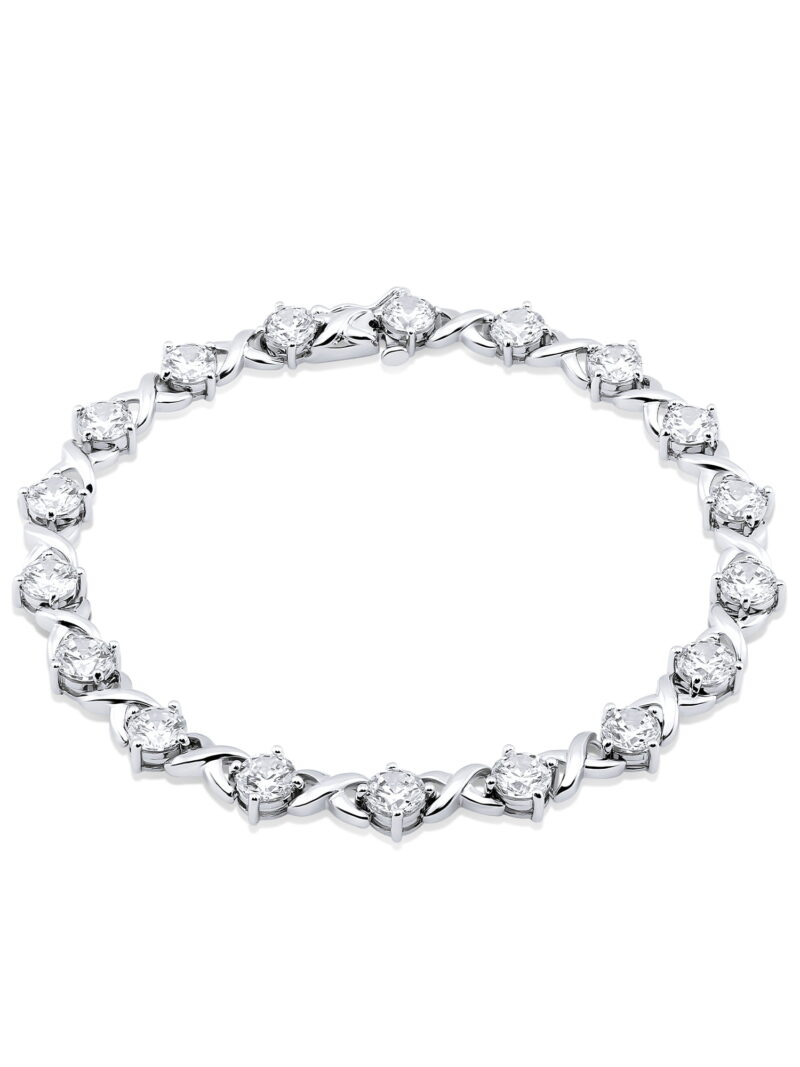 The tennis bracelet can make the ultimate difference between a breathtaking one and a tasteless one. Here is an attractive bracelet that will embrace and elevate your wrist with its daintiness. It is made of sterling silver in a twisted design as an infinity sign to represent your love for your beloved one. Besides, it is adorned with the simulated diamond around the band to add glint and glamour.
