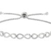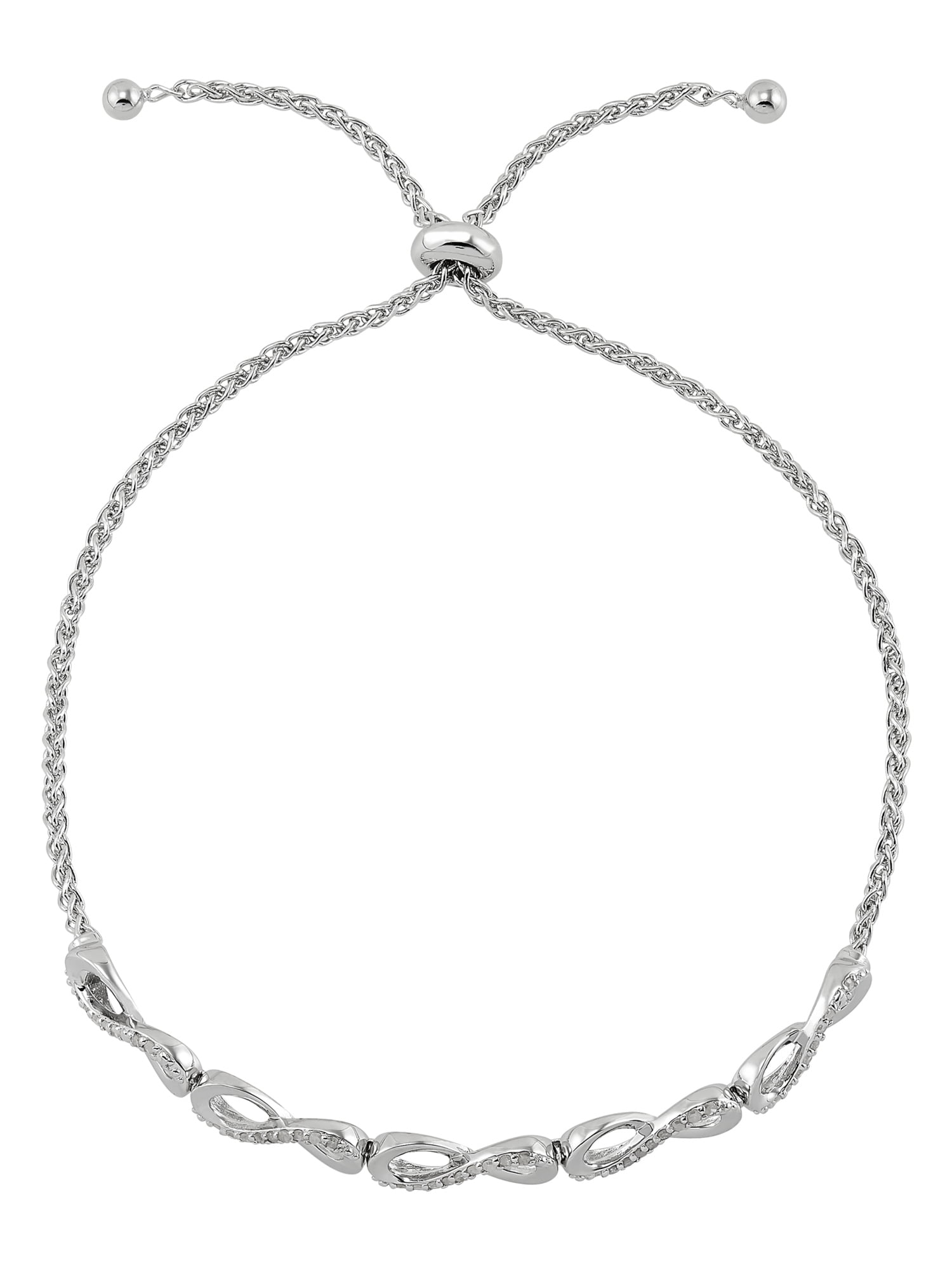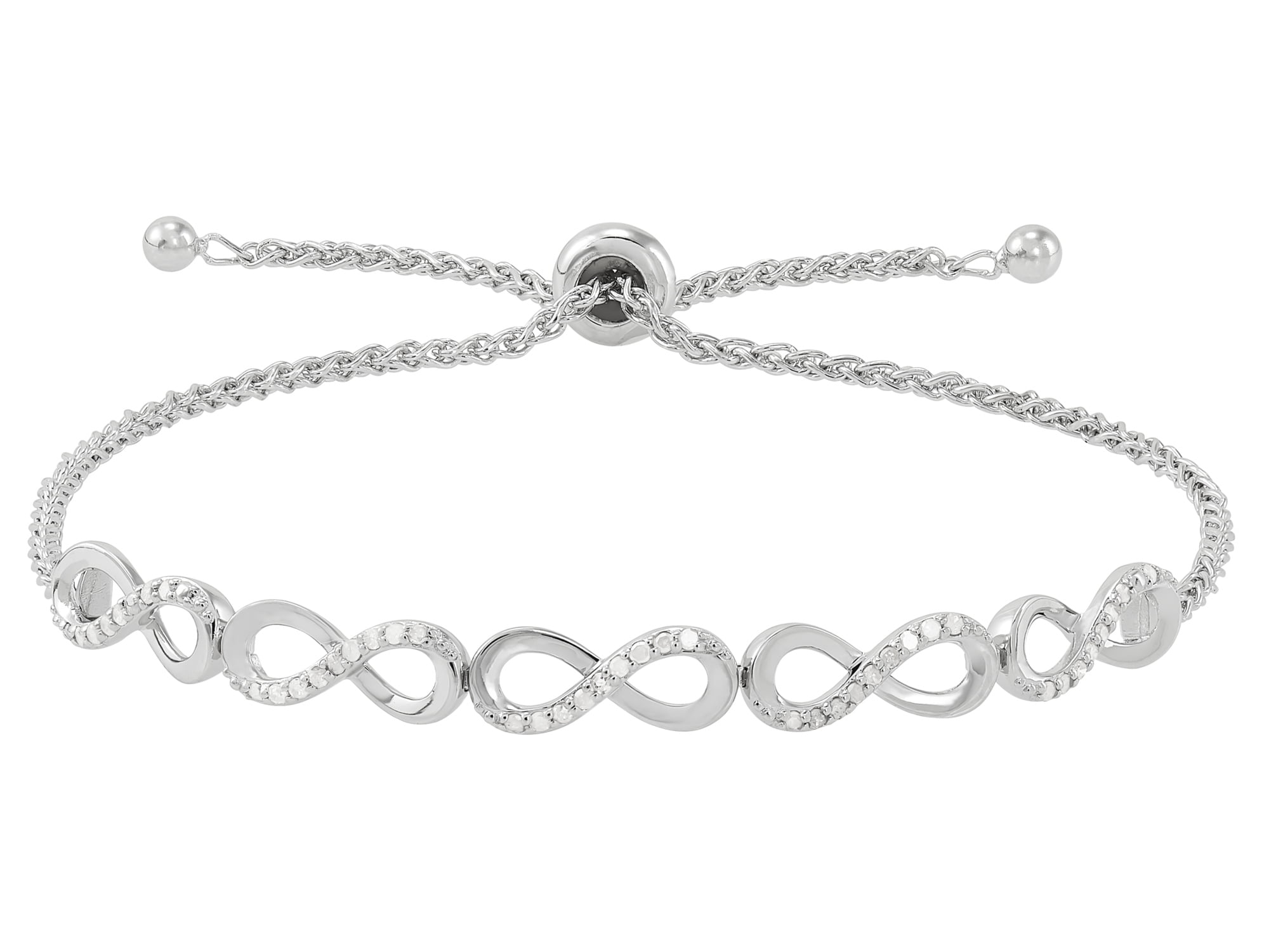 This Brilliance Fine Jewelry 1/4 CTTW Natural Diamond Infinity Bolo Bracelet in Sterling Silver is crafted in a polished finish. The bolo style closure of this bracelet allows you to adjust for a comfortable fit. Perfect to layer with your other bracelets, this jewelry piece contains forty-two single-cut natural diamonds for an enhanced and elegant look. It makes for the perfect gift for someone in your life and to celebrate them on a special occasion.