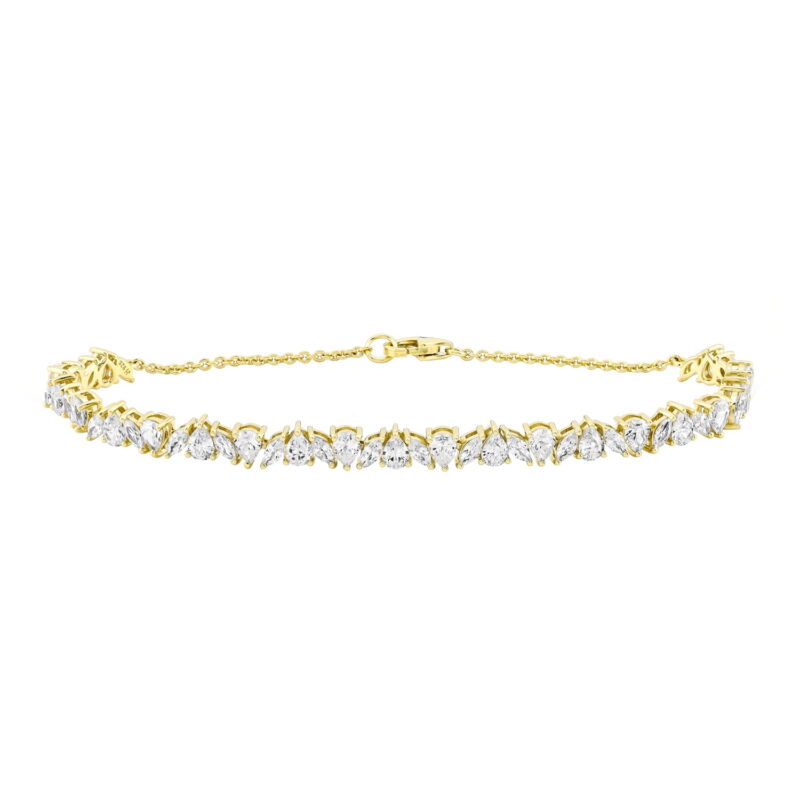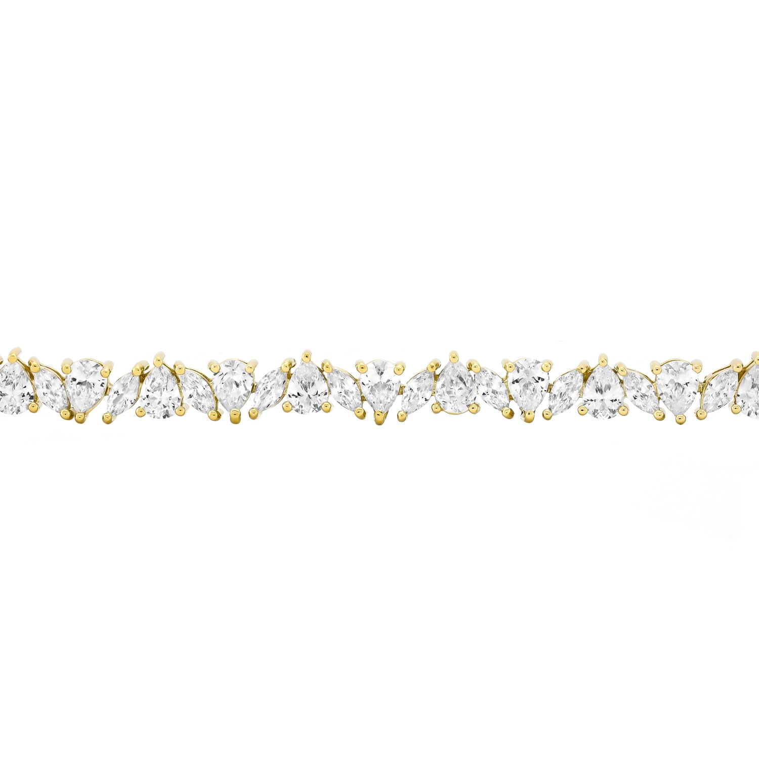 Brilliance Fine Jewelry Women’s 14K Gold Plated .925 Sterling Silver Simulated Marquise and Pear White Diamond Bracelet, 7.25″