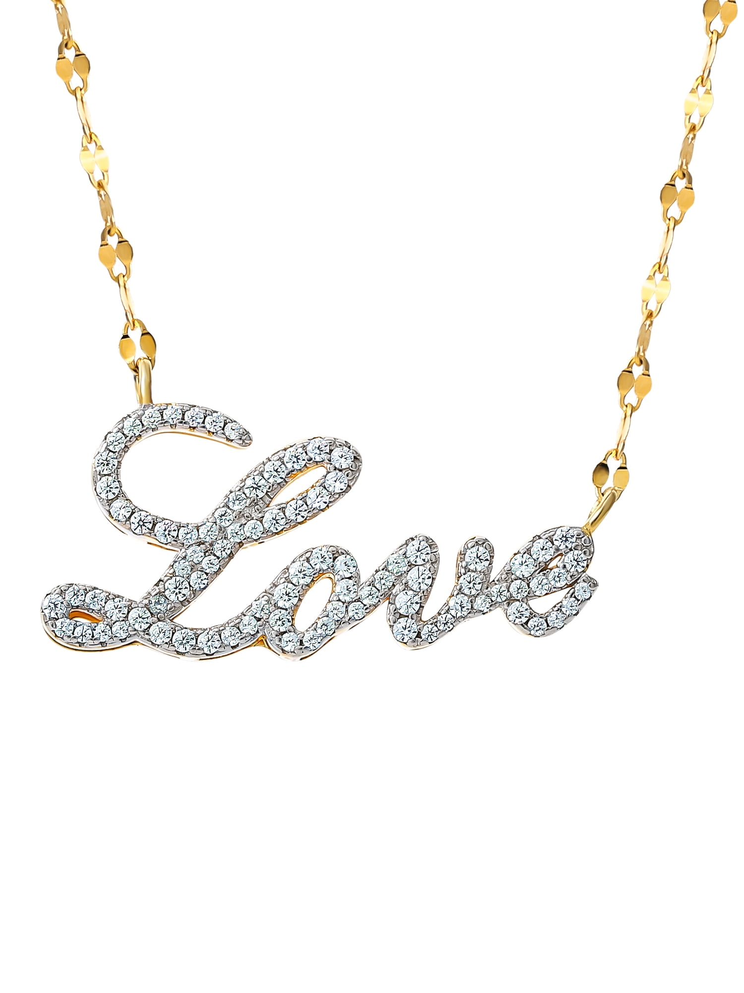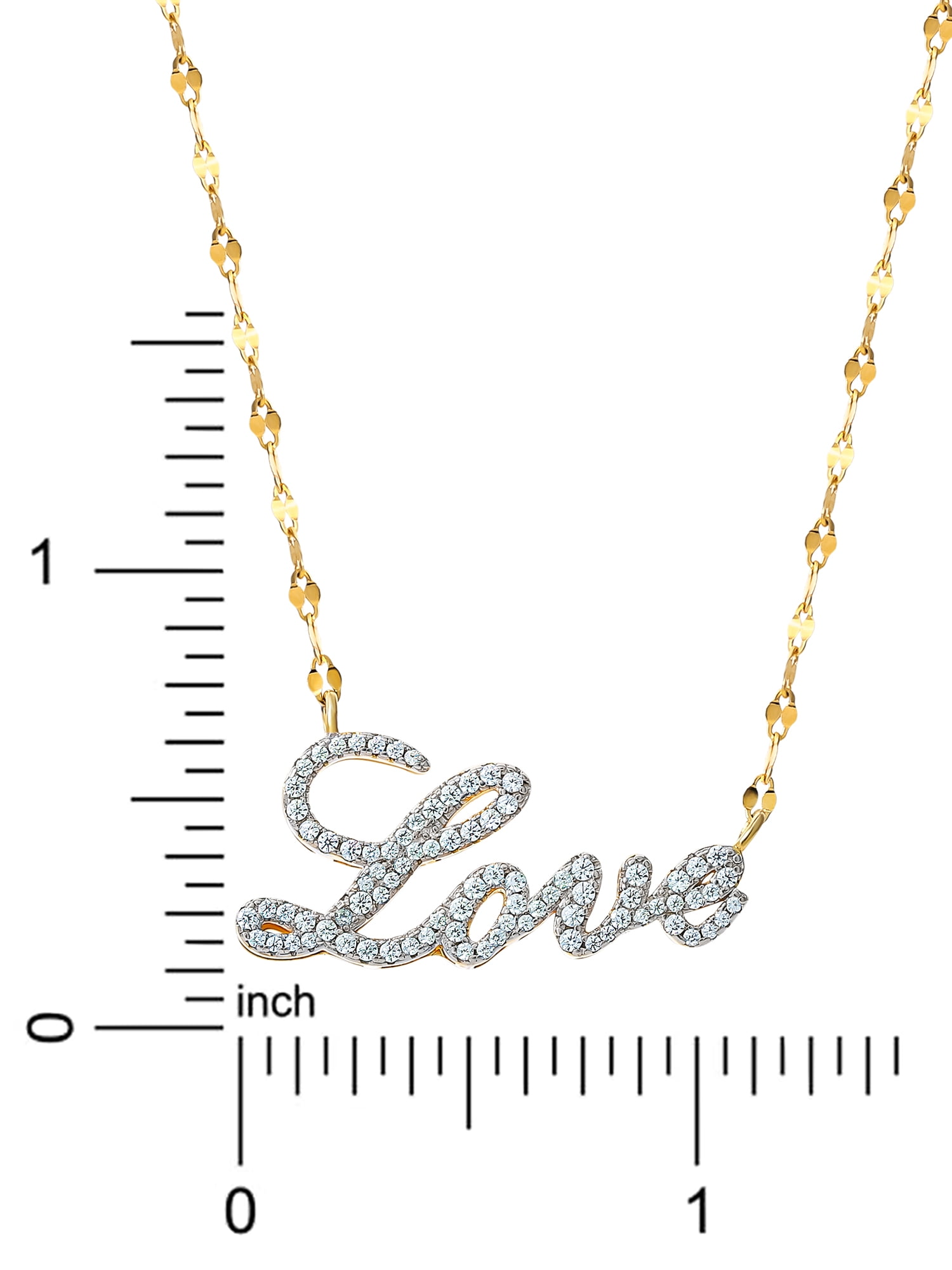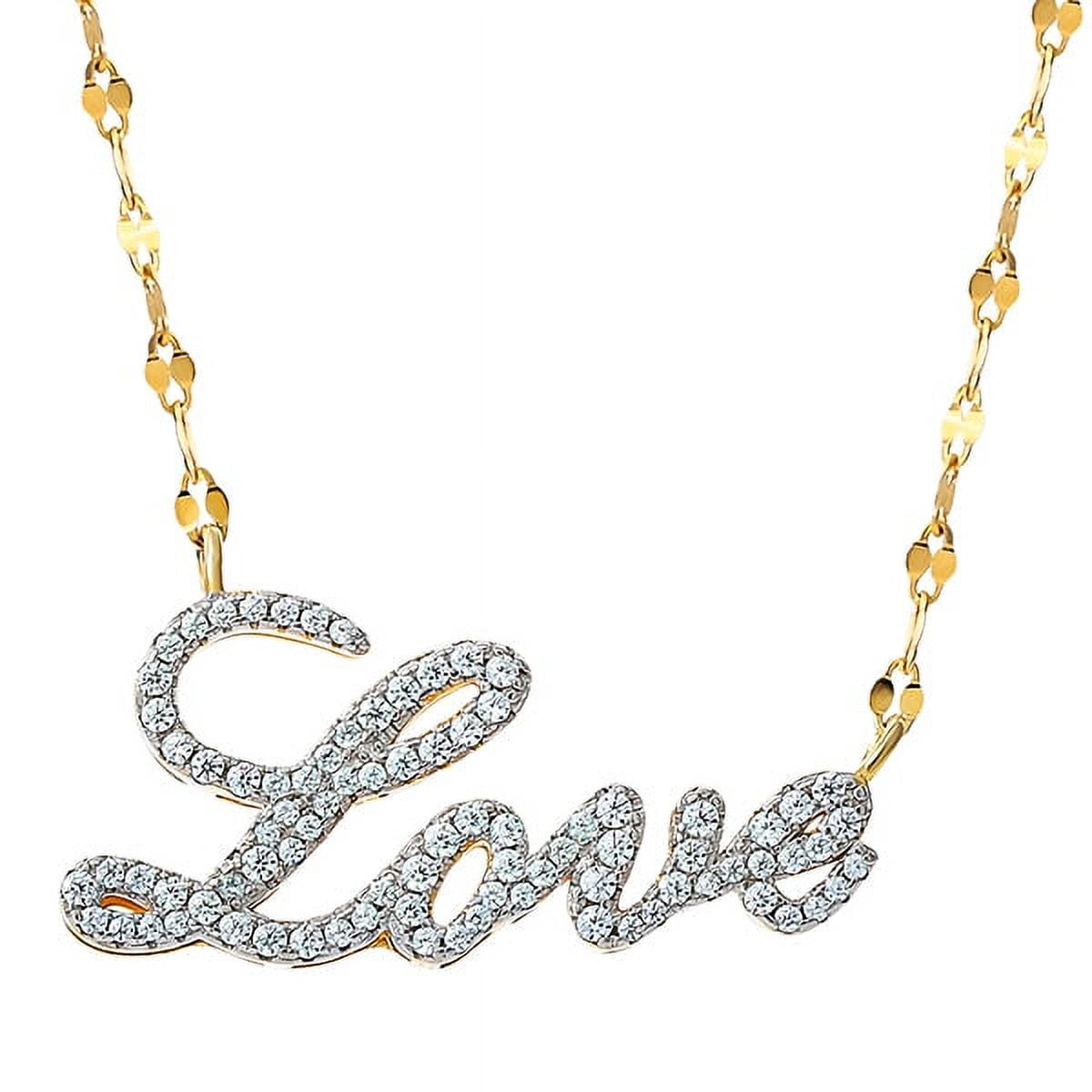 Brilliance Fine Jewelry Women’s Sterling Silver 14kt Gold Plated Diamond Love Necklace, 18″ Chain. Celebrate her with this Love Pendant necklace with a two-tone and Love pendant. A silver-plated Love is embellished with Simulated Diamonds for sparkle. Crafted from durable sterling silver and plated in gleaming 14kt yellow gold, this Love pendant necklace will catch the eye and demand a second look. Love pendant necklace has an 18-inch chain with a closure at the back neck Ready for Gift Giving: Delivered in a beautiful gift box. This Love necklace is an ideal present for birthdays, Christmas, Mother’s Day, Valentine’s Day, anniversaries, other holidays, or any gift-giving occasion. Express your Love to that special someone in your life!!