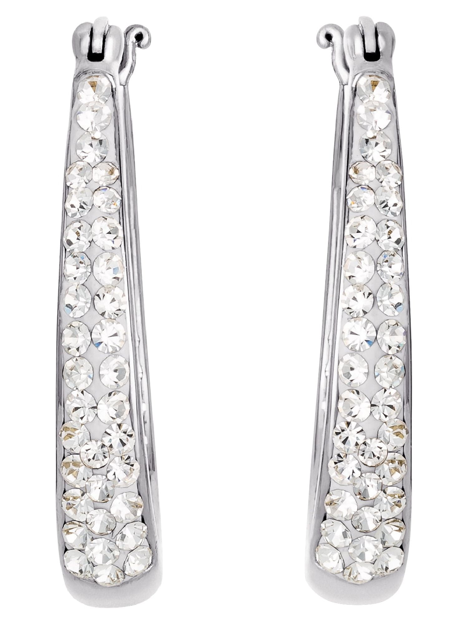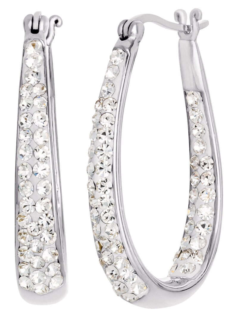 Elevate any outfit with these elegant Brilliance Fine Jewelry Sterling Silver Clear Crystal Hoop Earrings, featuring a classic hoop silhouette accented with a dazzling row of clear crystals. Crafted from premium sterling silver, they offer lasting shine and hypoallergenic comfort for everyday wear. The timeless hoop design is versatile enough to complement both casual and formal looks, while lightweight construction ensures all-day wearability. Secure latch-back closures provide a reliable fit, and the earrings arrive in branded packaging—making them perfect for gifting or adding a refined touch to your jewelry collection.