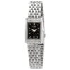 Black dial enhanced by silver-tone hands. Silver-tone stainless steel case with a silver-tone stainless steel band. Quartz movement. 50 meters / 165 feet water resistance. Fixed bezel. Scratch Resistant Mineral crystal. Solid caseback. Fold Over with Safety Release clasp. Pull / Push crown. Case size 18 mm x 27 mm x 6.5 mm. Band 13 mm x long. Citizen EJ5850-57E Watch.