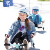 The Crazy Cart Shuffle from Razor is an incredibly fun, kid-powered go-kart that enables riders to drive, drift, and spin with ease! Riders simply shuffle their feet back and forth to gain speed, and then lift the Drift Bar to initiate the incredibly fun feeling of drifting and spinning freely. The Shuffle’s Crazy Cart Drift Bar design puts full control of drifts and spins in the rider’s hands. The Shuffle’s intuitive drive and drift systems have been designed to make it easy and fun for everyone to enjoy, whether novice or expert. The Crazy Cart Shuffle also features an adjustable length frame with 5 settings which means you can tailor your frame size to best fit you and still be able to easily share the fun of your Crazy Cart Shuffle with siblings and friends (unisex children ages 4+) of various heights. Without any batteries to charge or maintain, the Crazy Cart Shuffle is always ready for fun when you are!