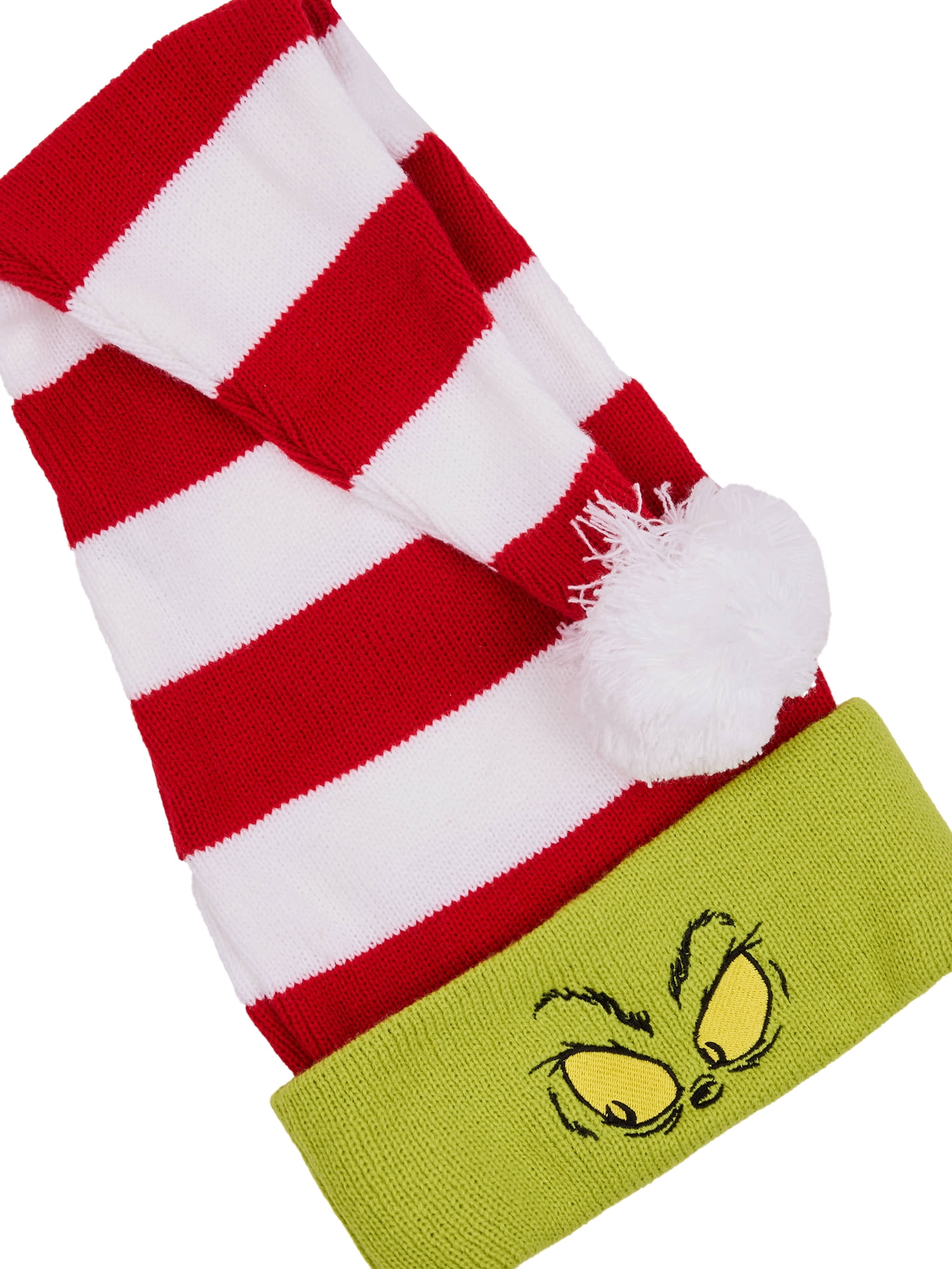 Bring some mischievous holiday spirit to your Christmas celebrations with this Grinch Santa Hat! Featuring the iconic red and white striped design with a fluffy pom-pom, this festive hat adds a playful twist with Grinch’s signature yellow eyes embroidered on the bright green cuff. Made from soft, cozy fabric, it ensures warmth and comfort for holiday parties, ugly sweater events, or just spreading some Grinchy cheer.Perfect for Christmas lovers, Dr. Seuss fans, and holiday pranksters, this Grinch-inspired hat is a must-have for the season. Whether you’re feeling jolly or a little grumpy, this hat is sure to steal the spotlight. Great for kids and adults alike, it’s the perfect finishing touch for holiday outfits. Get into the holiday spirit—Grinch style! Order your Grinch Santa Hat today and make Christmas extra fun!