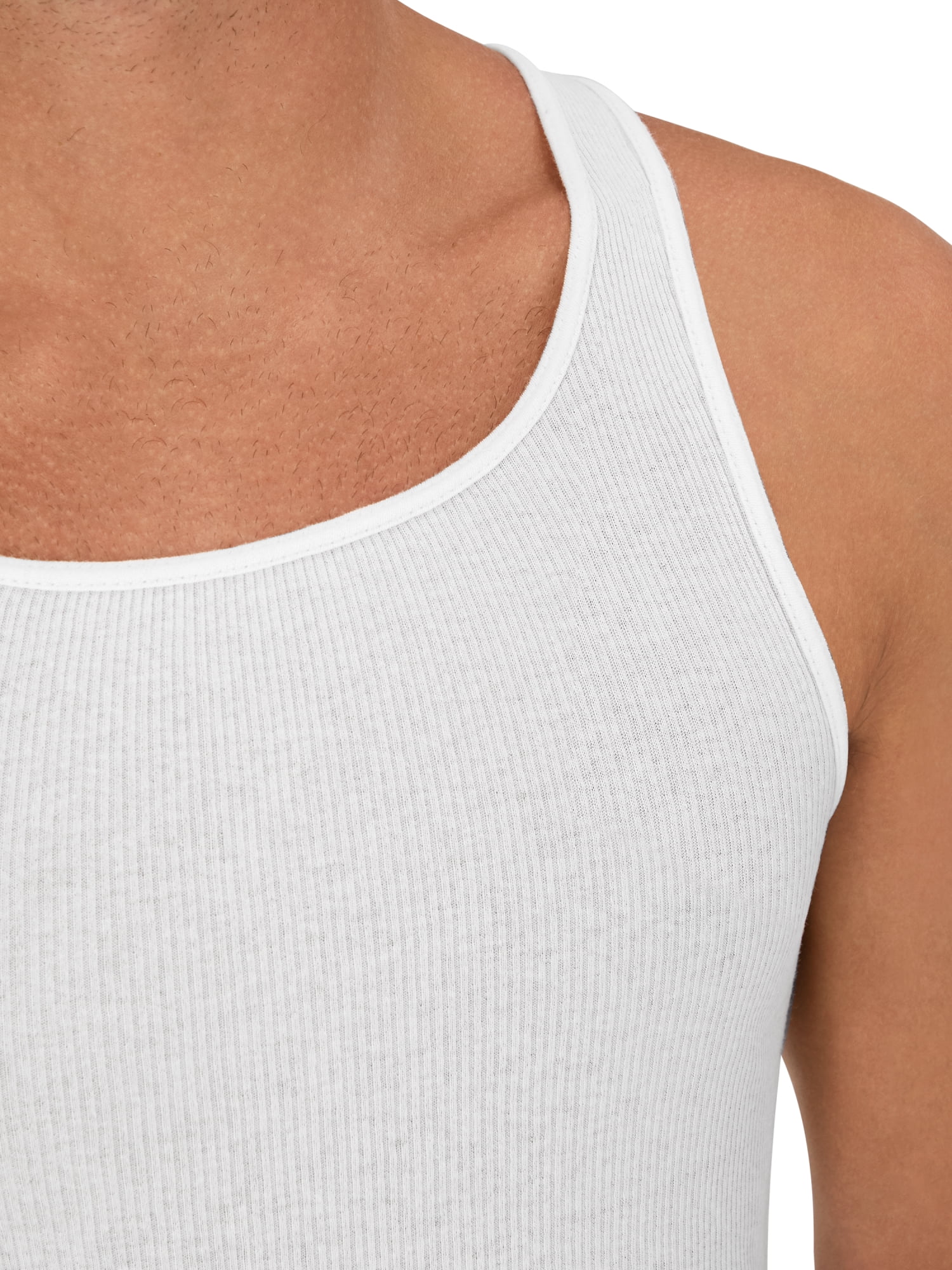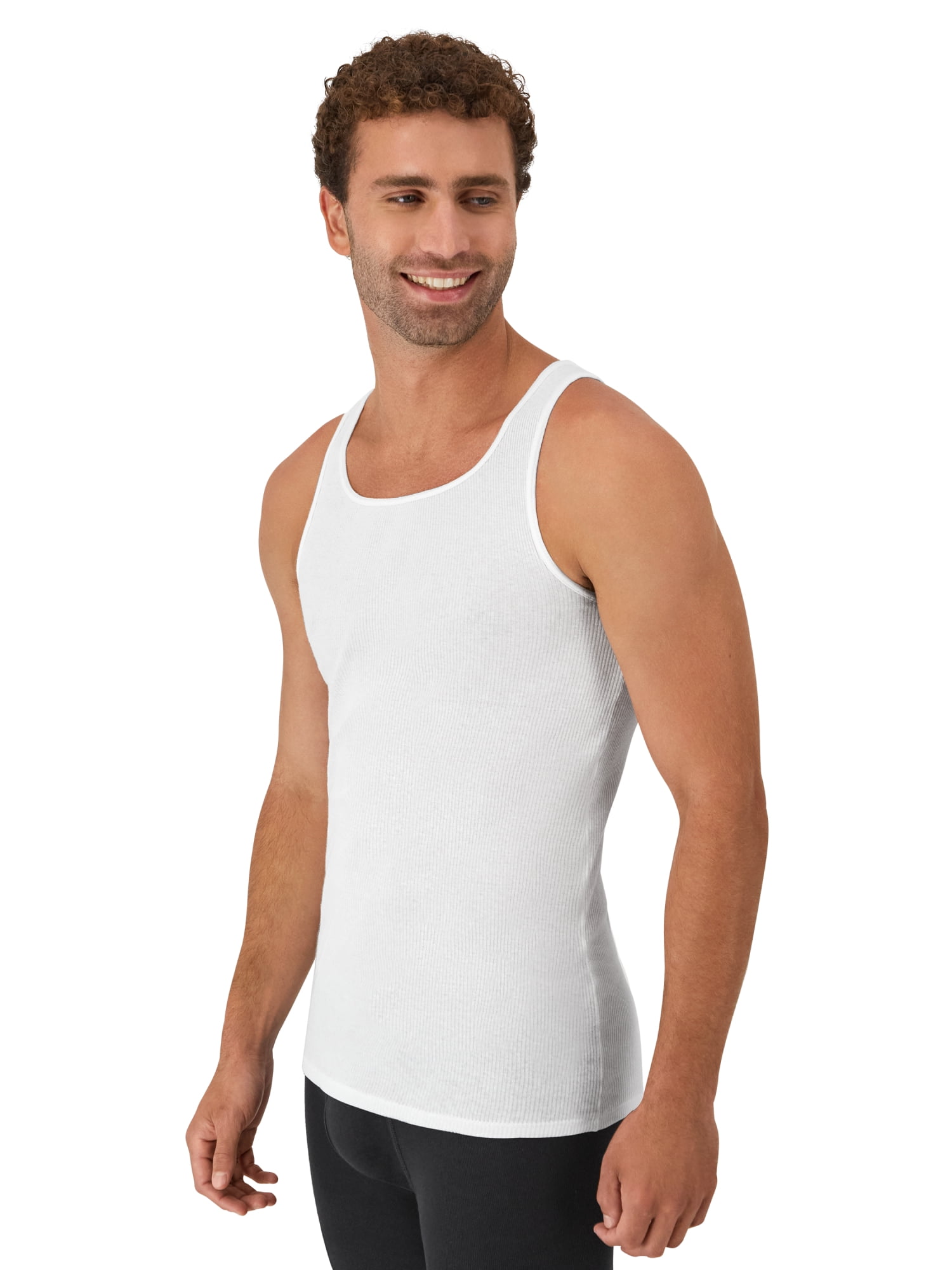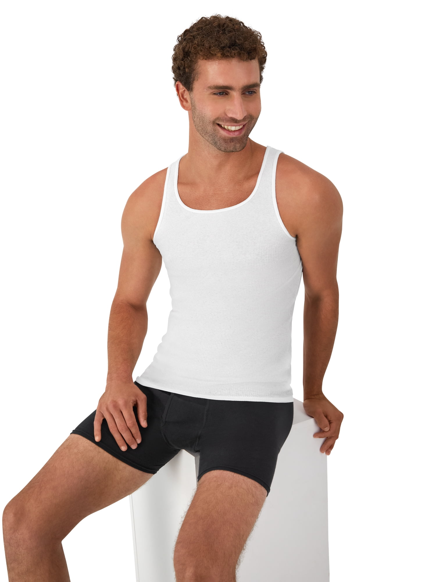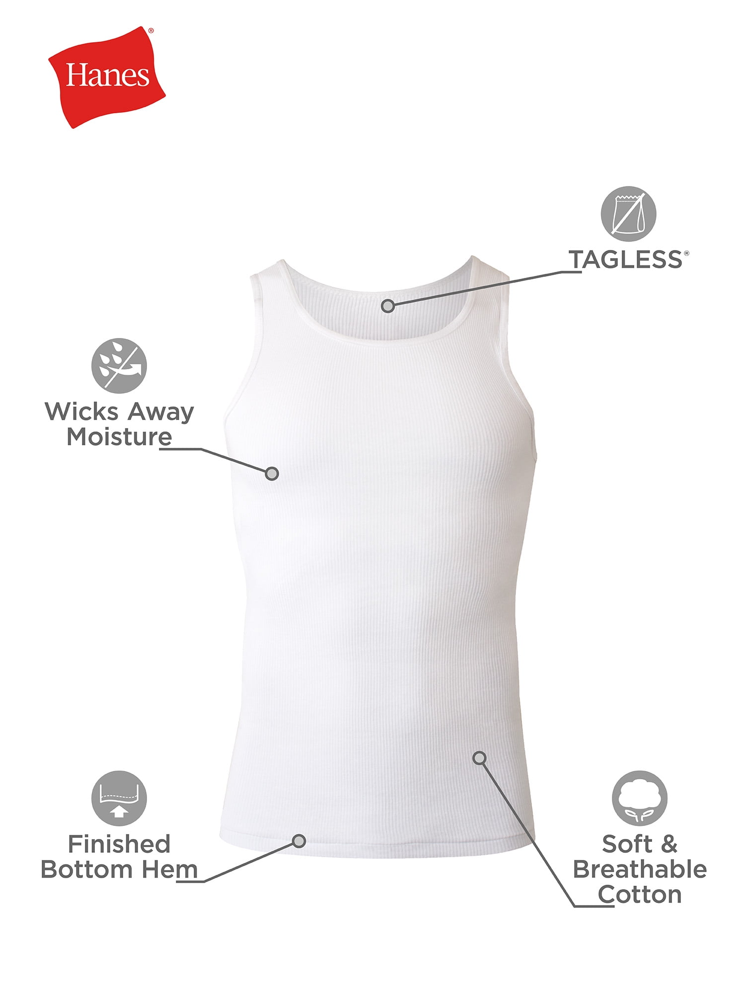 Not all tank undershirts are the same. The experts at Hanes? spend their days making basic ribbed tank undershirts even better. These ComfortSoft? cotton tanks now feature a longer length and all-day flex fabric that moves with you and maintains the fit you expect. Cool Comfort? moisture- wicking fabric works to keep you feeling cool and comfy no matter what the day brings. Soft and lightweight, these cotton tanks are designed with a banded scoop neckline and armholes for exceptional sturdiness. One more detail you’ll appreciate is the Tagless? design for itch-free comfort. Stock up on these Hanes-best cotton tank undershirts for men in a convenient multipack.